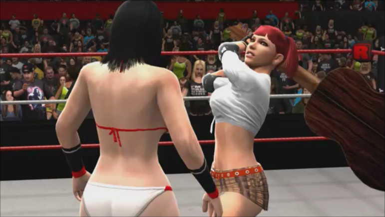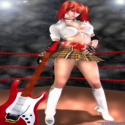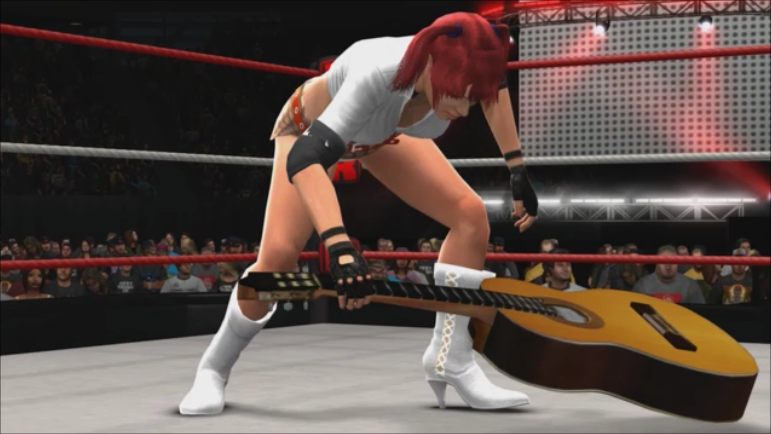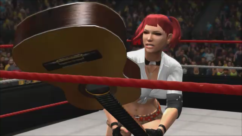 "Yes, the 'damn' guitar, Al! Some wrestlers use steel chairs, others use Kendo sticks and a few use baseball bats and sledgehammers! But she uses an electric guitar! Candy Cane's got that smug grin on her face! And that means bad news for her opponent!"
