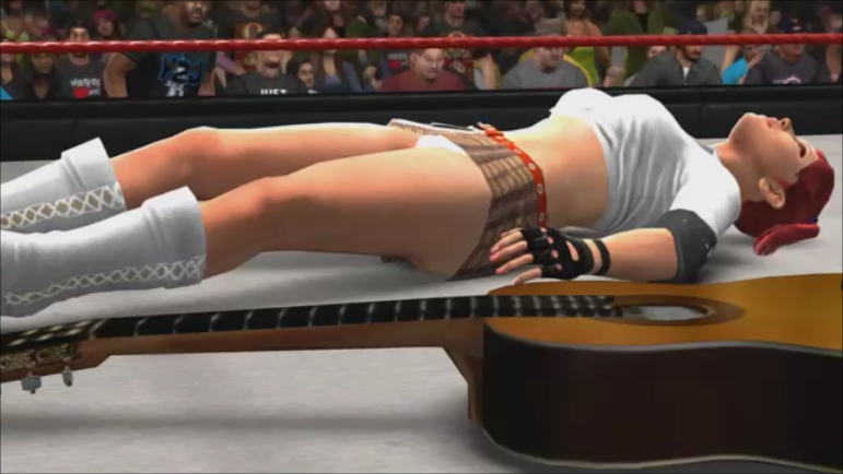 It turned out to be the perfect counter. By the time Candy Cane could react, it was too late. When she brought her guitar down, the instrument's body bounced off the ropes and smacked across the Canadian's skull.