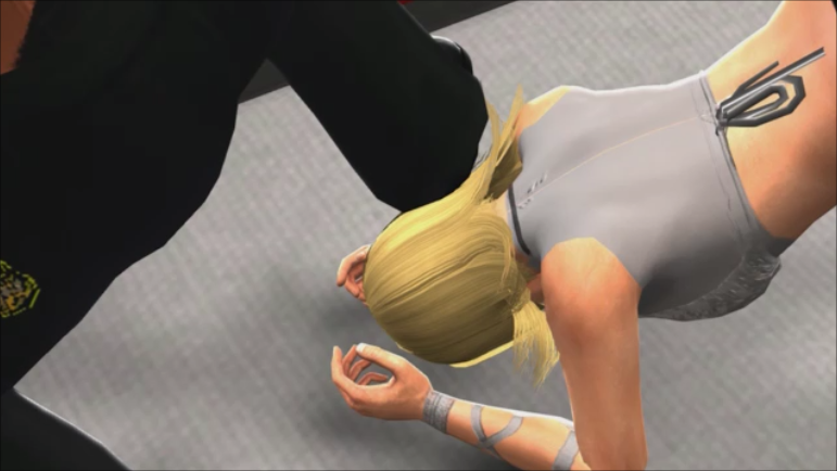 It was obvious that this seventeen year old girl was in a bad way, especially after being on the receiving end of some massive punishment. She's been slammed on the mat countless of times and attacked in ways she had never experience before. And yet somehow, the former idol has made it back to her hands and knees.