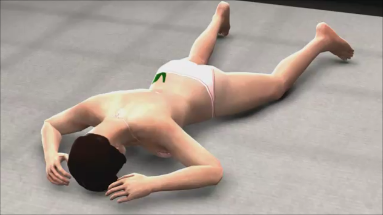 She then kicked Hagiwara in the stomach, forcing her to double over.