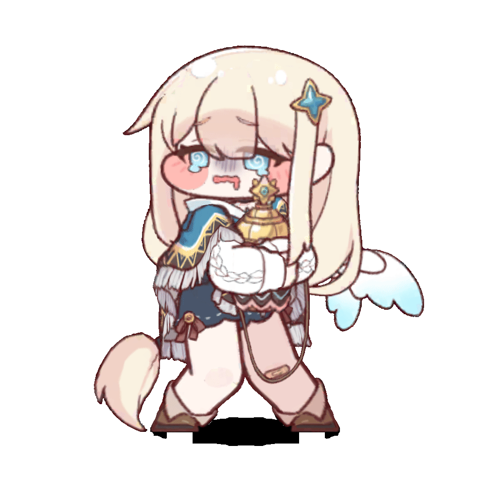 Bocchi stunned from Ragnador (Bocchi the Rock collab event), only on JP stores, however for some reason their game includes English translation, albeit not very accurate most of the time, but still cool. They have their own original characters from the game, as well as a bunch of other collab characters, like Frieren, Lycoris Recoil, etc.