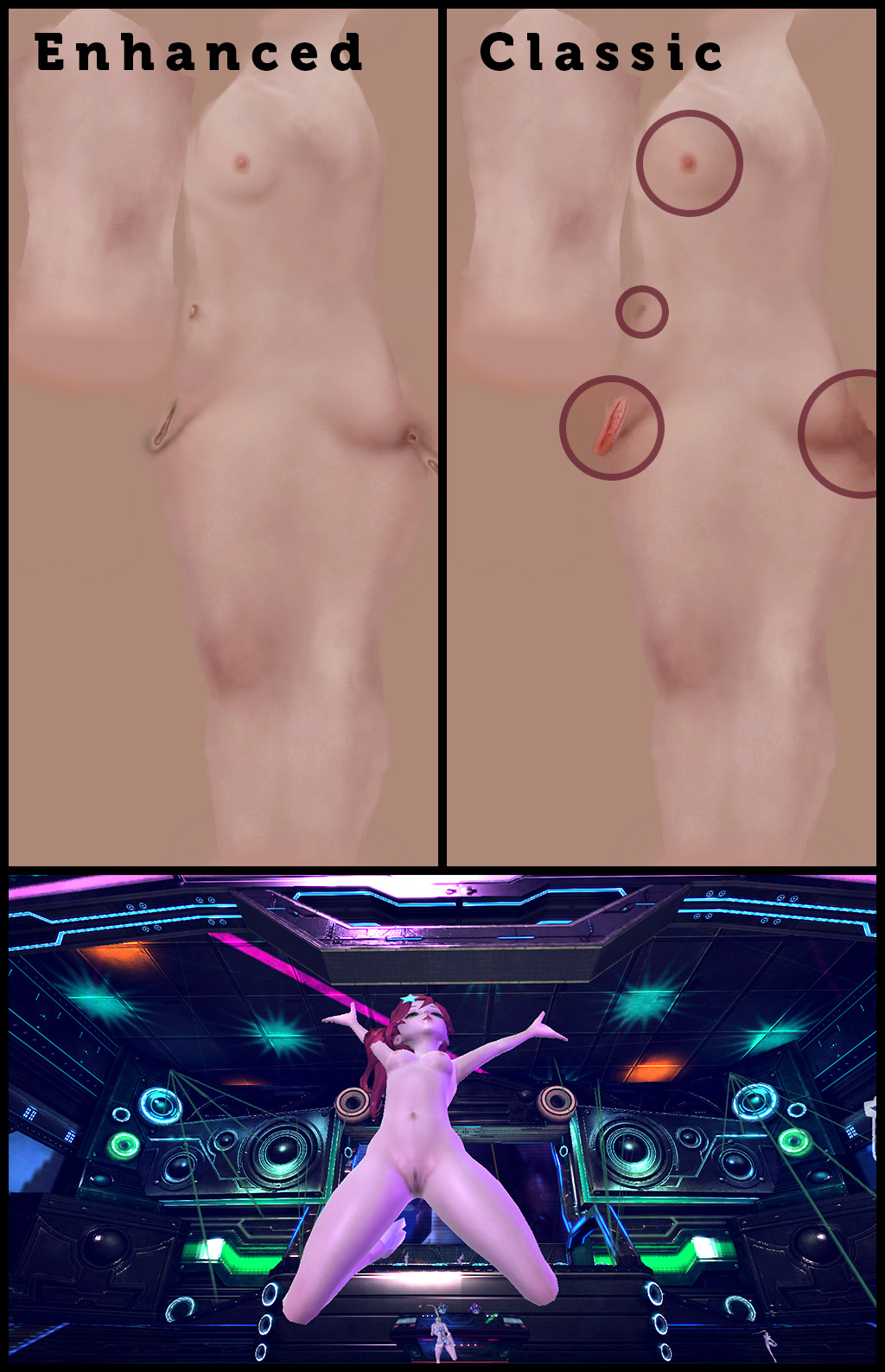 Just noticed that link expired so a new one in-placed. :P For the nip-slip it looks like the checkered bra itself is painted onto the skin? GIMP might do the trick if it is. Shout-outs to the OP, modders and everyone helping the game get cooler. What else can be added? Fine hair in upper-crotch areas?