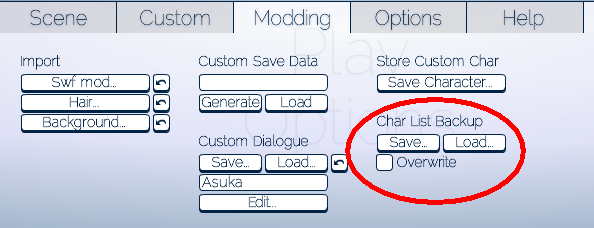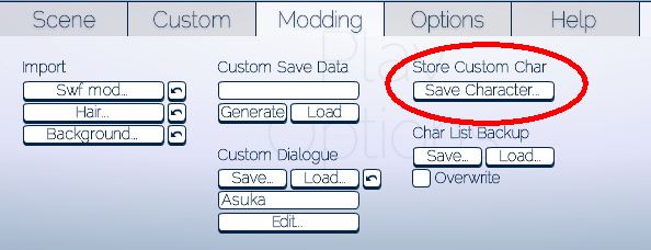2. Store your custom character. This adds it to the in-game menu, but doesn't create a permanent save; but is necessary for one.