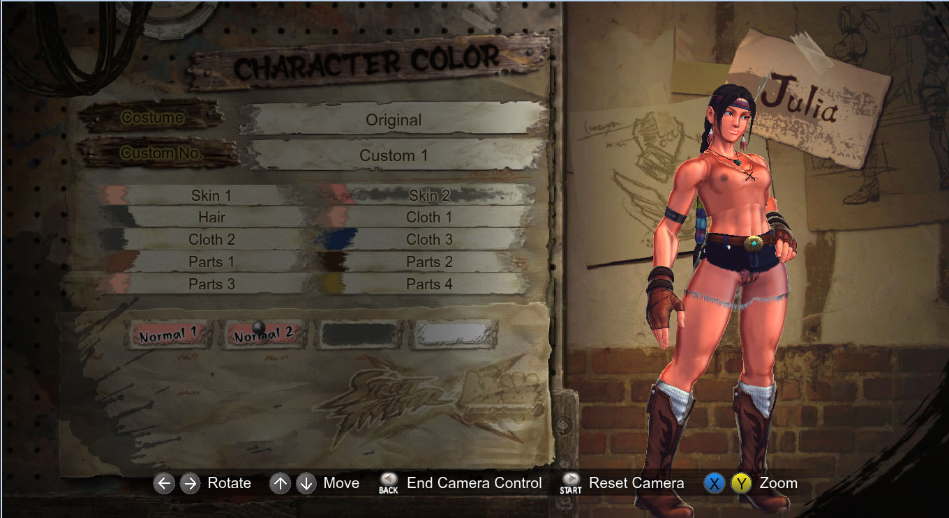 fixed - Julia's starting normal color so it'll match the picture and edit her bottom part of model so when she lean forward her butt doesn't stick out with hidden vertexes of 3d model which i extend to cover the crack.