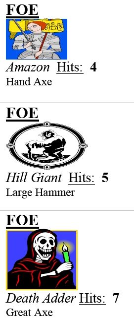 Technically, a foe card (featuring a Zako with 3 hit points) just needs the information "F3". Everything else is just for fun. (Thus it's really important, since we play just for fun.)
