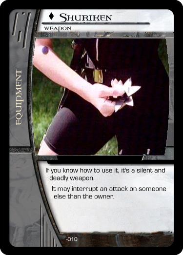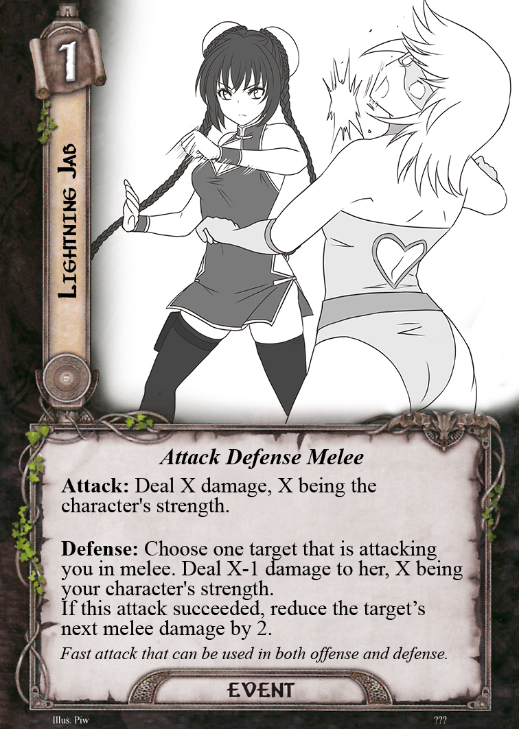 Card - Maki.jpg Card - Petal (LoTR).jpg Cool Sword.jpg Lightning Jab.jpg Outnumbered.jpg
