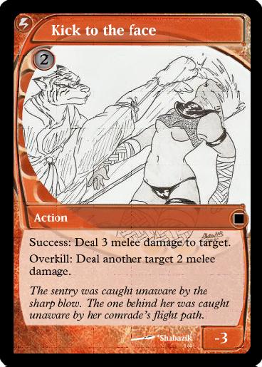 Kick to the Face (A): Discard to use. Deal X damage, X being the character's strength.