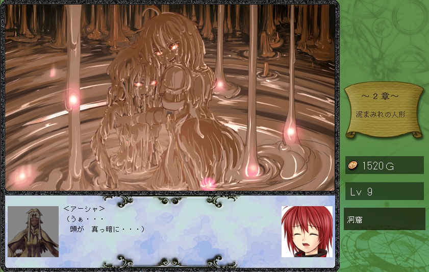 you can actually see Silfa slowly fading off into a mudpile while you're going through the dialogs, so you won't be able to see everything if you pressed "f" to skip the dialogs, because the picture changes very slowly, into this :