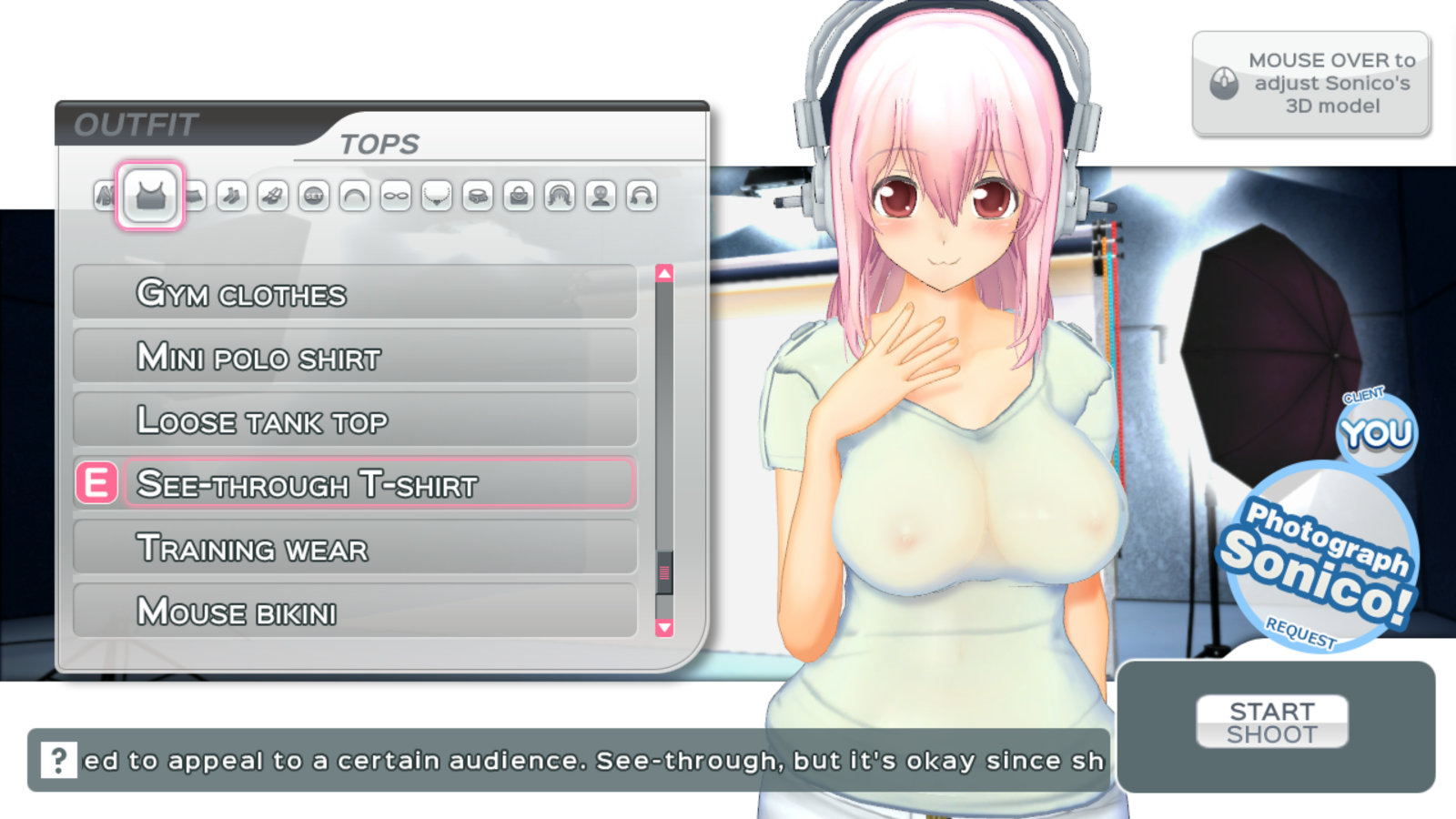 In addition, the bondage outfit has retextured underwear to make matching sets, since the shorts were removed. It looked weird with only black and white. All colors of the see-through shirt now have no bikini underneath.