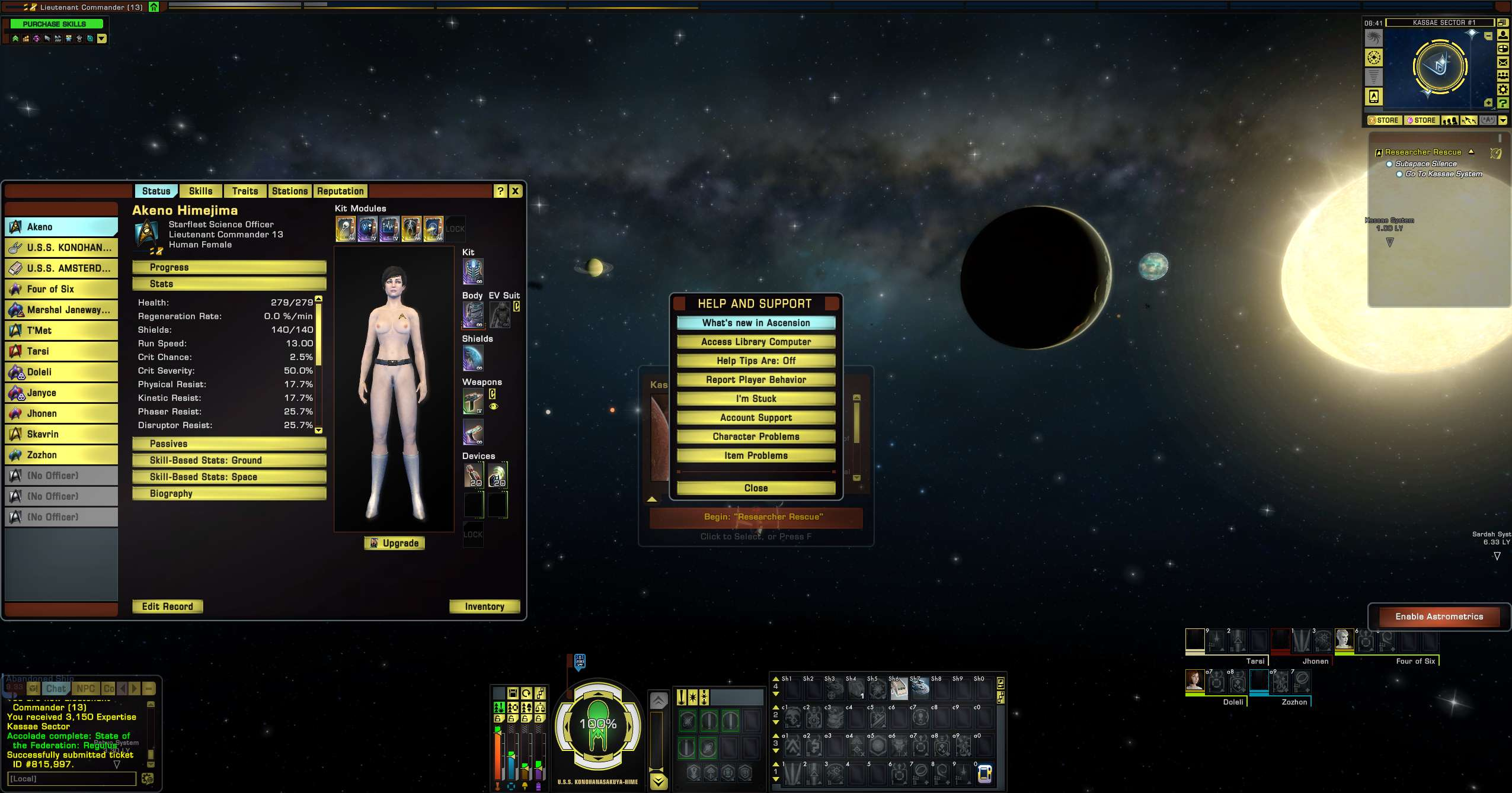 ok kids.. here is a lesson learned.. HOPEFULLY cryptic GM/cs will not see it. IF YOU PUT IN A BUG REPORT.. IT WILL SNAPSHOT YOUR CHARACTER SHEET