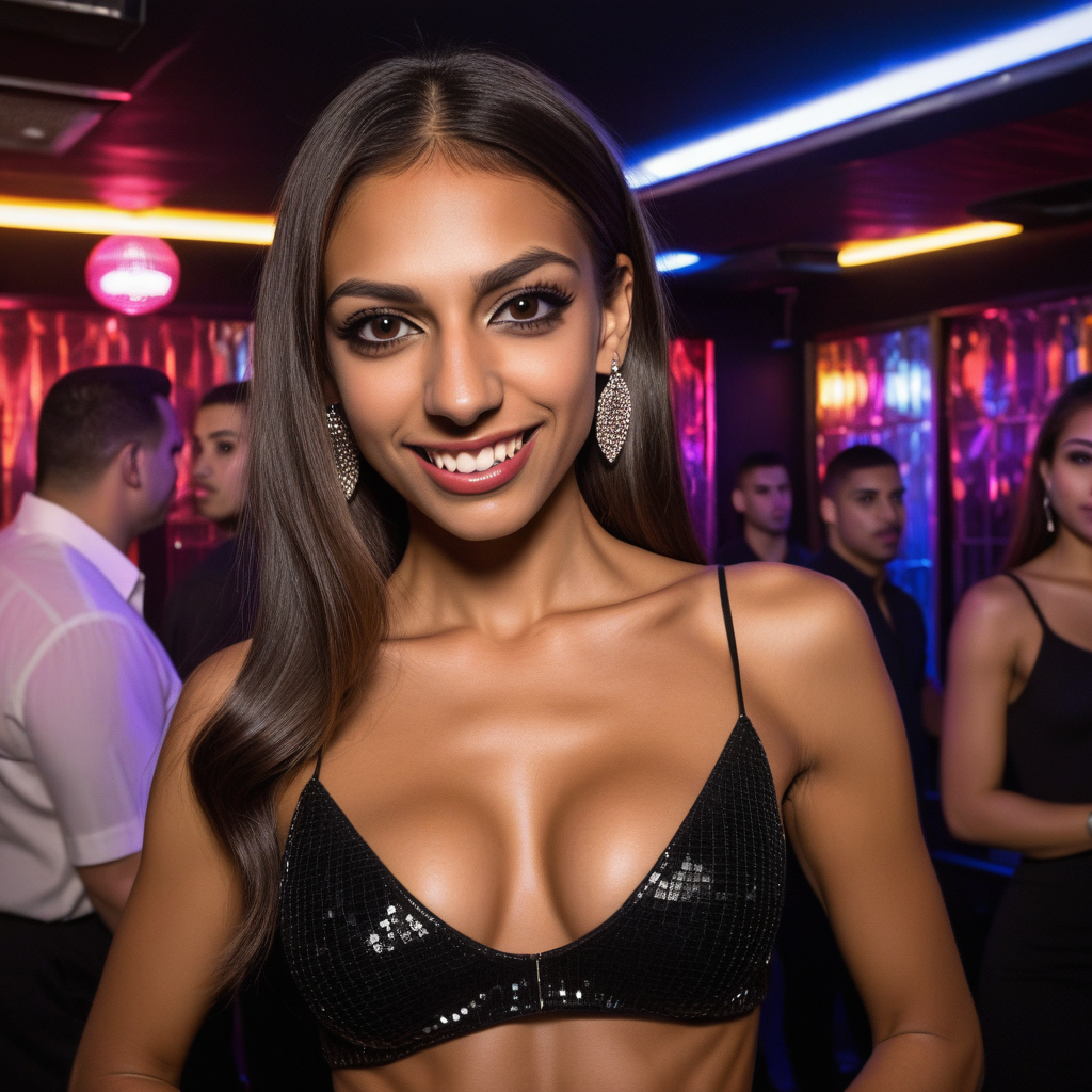 Appearance: A bubbly brunette with a bright smile, wearing her red-and-white cheerleading uniform. Her hair is tied in a high ponytail with a ribbon, and she has sparkly eyeshadow and glossy lips that reflect the dim gym lights.