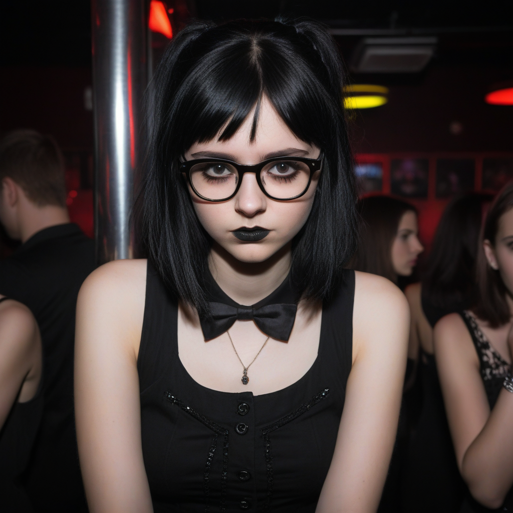 Appearance: A petite girl with messy black hair tied into a bun. Her paint-stained overalls and smudged hands indicate she’s been working on a mural. A paintbrush sticks out of her pocket, and she wears large, round glasses that are slightly crooked.