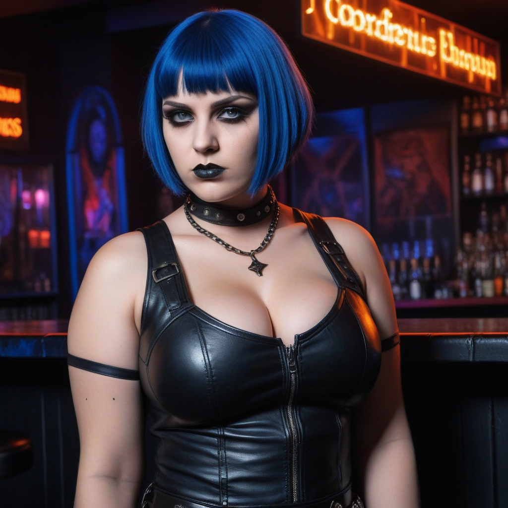 Appearance: A punkish girl with short, choppy dyed blue hair. She wears a leather jacket covered in pins, ripped jeans, and heavy boots. Her knuckles are tattooed, and she has a cigarette tucked behind her ear.