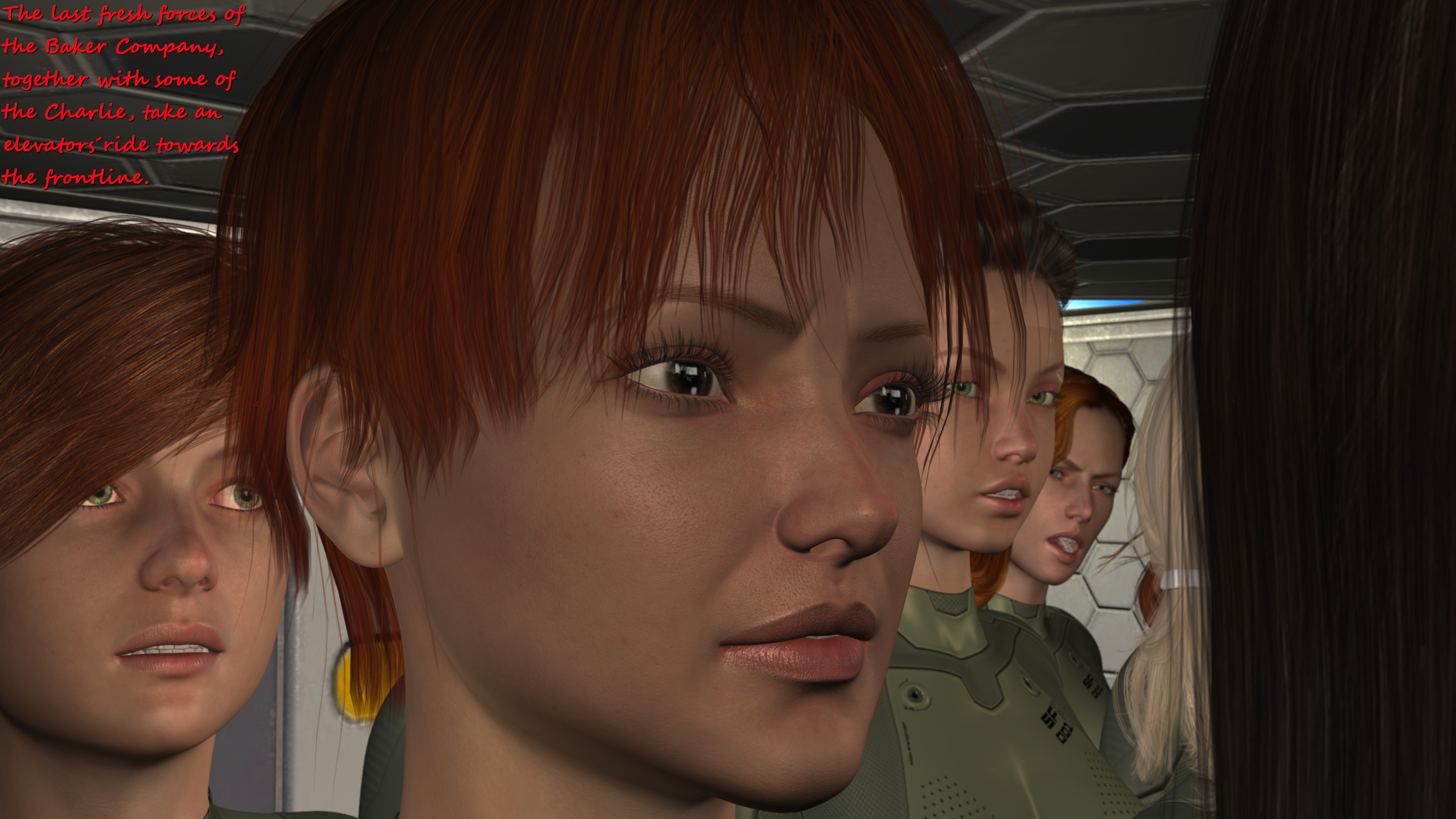 Battlefield flowers? Well said. And their curves are realy good. The second picture is also very good. Like the hair colour of the girl from the left. And shell casings. I almost hear how they clanking when hit the floor.You´re welcome! Here comes the next six images of the seventh and final chapter for the weekend: