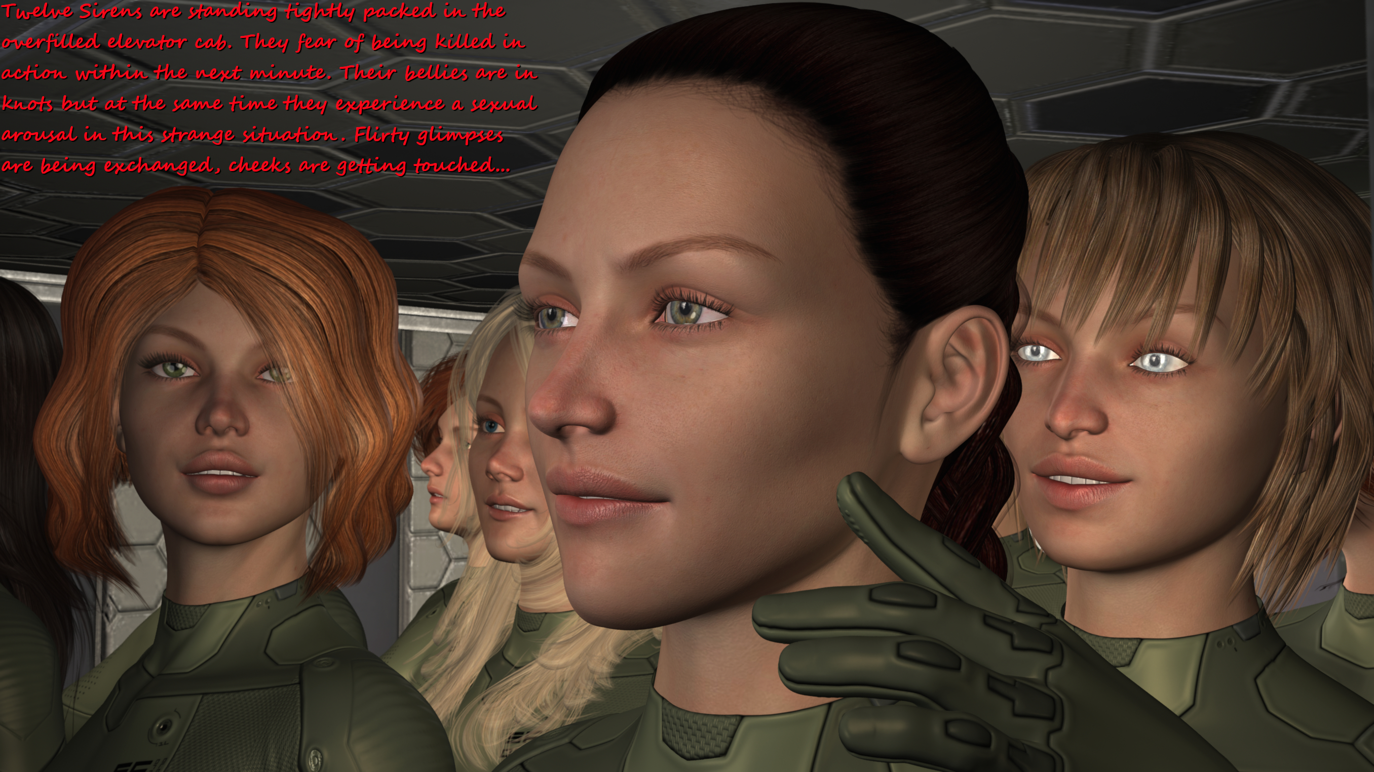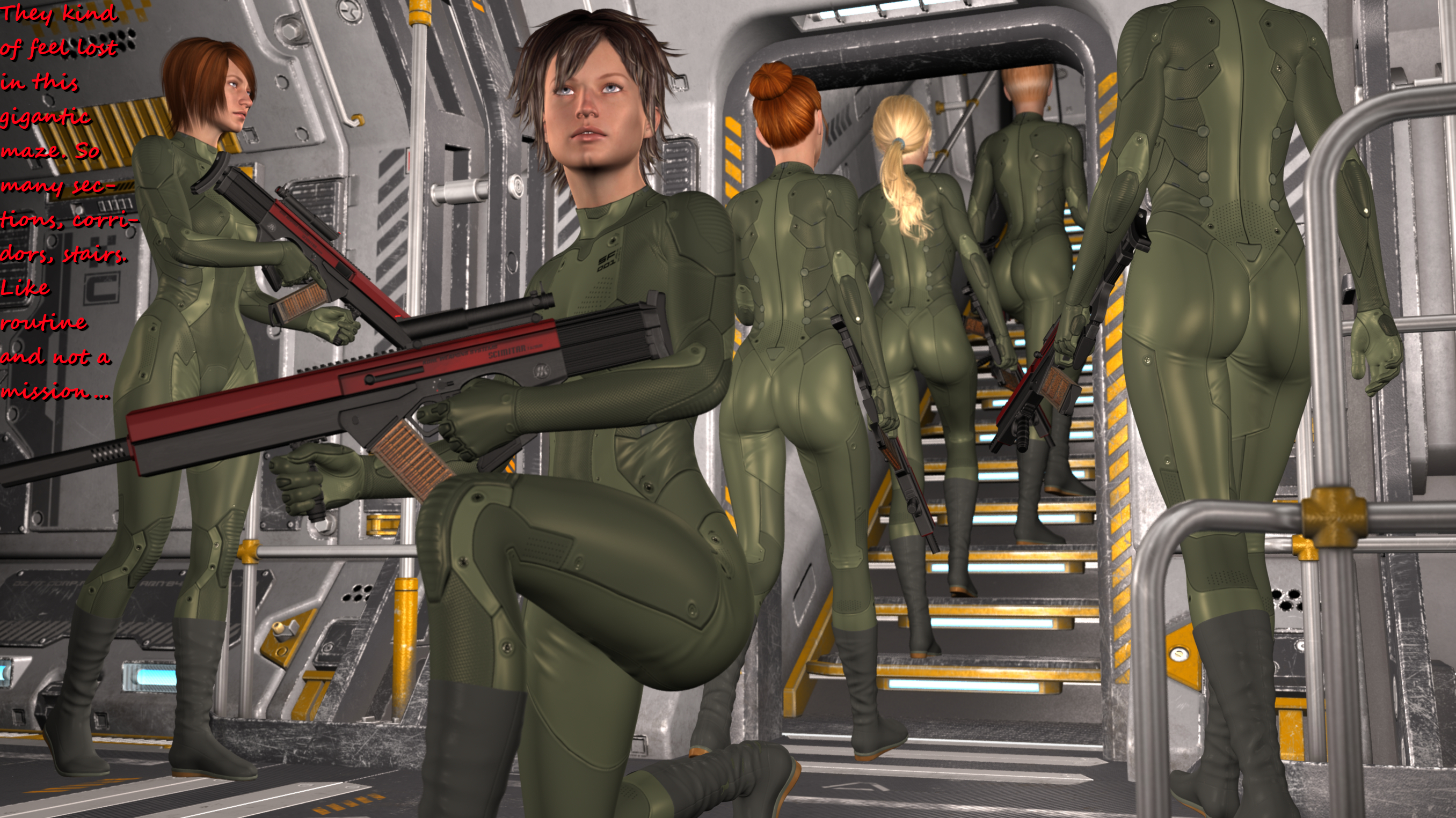 Yeah - here and there I like to depict those delicate details like butts or cameltoes or nipples. These skintight uniforms are perfectly made for this;-) I guess in the next batch you will like the close-up of your favourite Sumurian especially;-)...:3rd picture - nice butts of the siren in the base of the picture and another siren between her and sumurian (in the right corner). Upskirt is the best part of the picture for me.