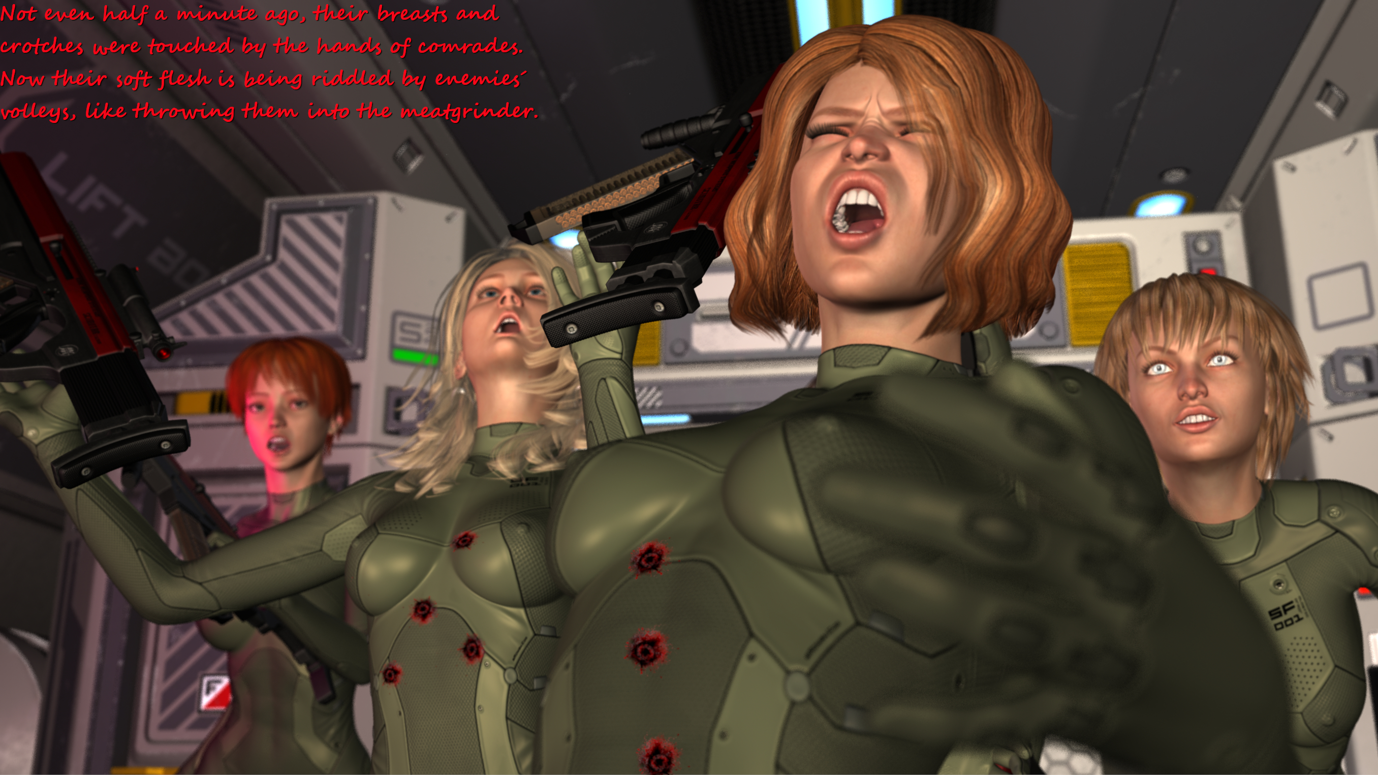 Thanks again for the kind compliments! The bloody skirmish continues in the next batch:Battlefield flowers? Well said. And their curves are realy good. The second picture is also very good. Like the hair colour of the girl from the left. And shell casings. I almost hear how they clanking when hit the floor.