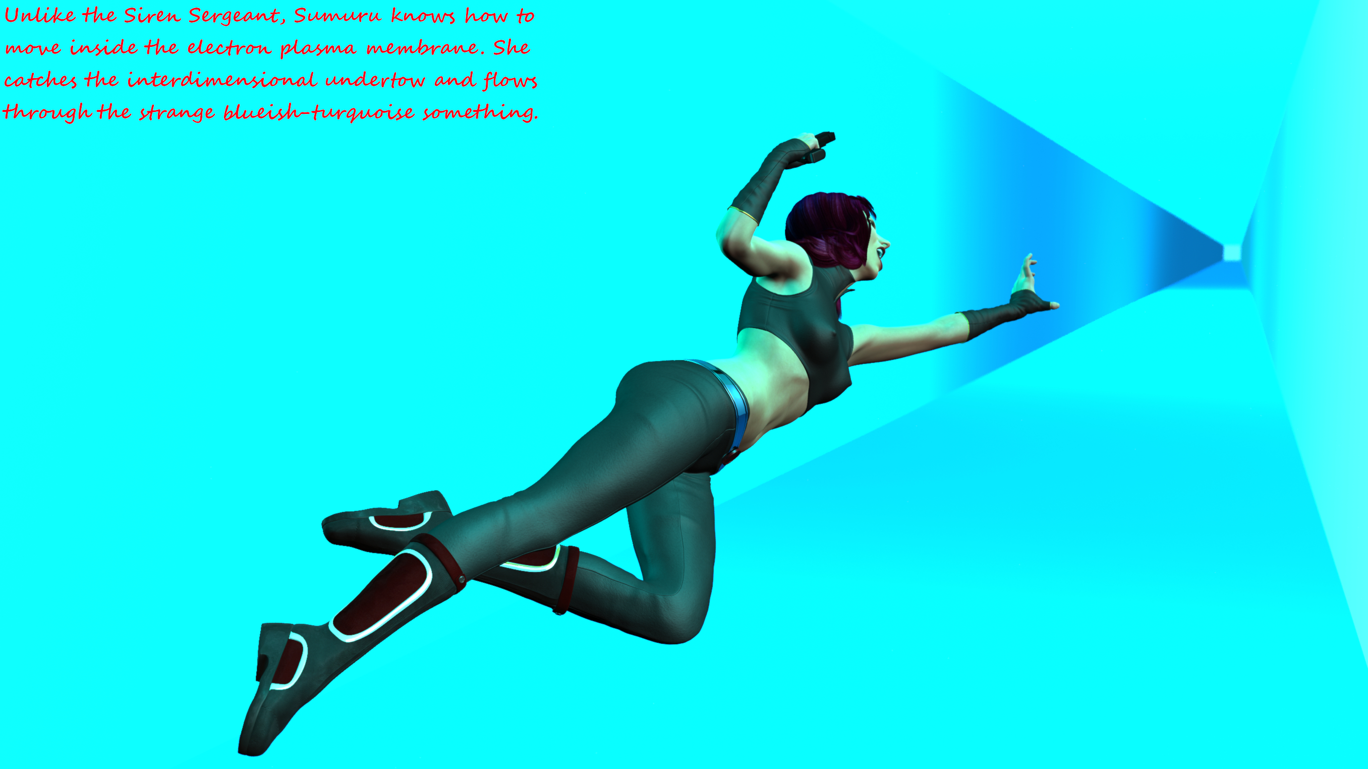 Well, my fault. I missed the last sentence. I have read about this unnatural space and decided there is no floor, but when I have read Siren could step back I decided if there is a floor she can and will pursuit Sumuru.Er - no, not really. Please read the texts too. She is breaking up the chase through the plasma corridor. Well, maybe it would´ve been more exciting, indeed. But you never know...;-)