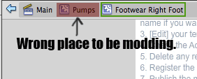 I'm trying to make a footwear mod and it's not showing up in game. I've made mods for other costumes and they all work fine, though anything I do I can't get footwear to show anything on the character.
