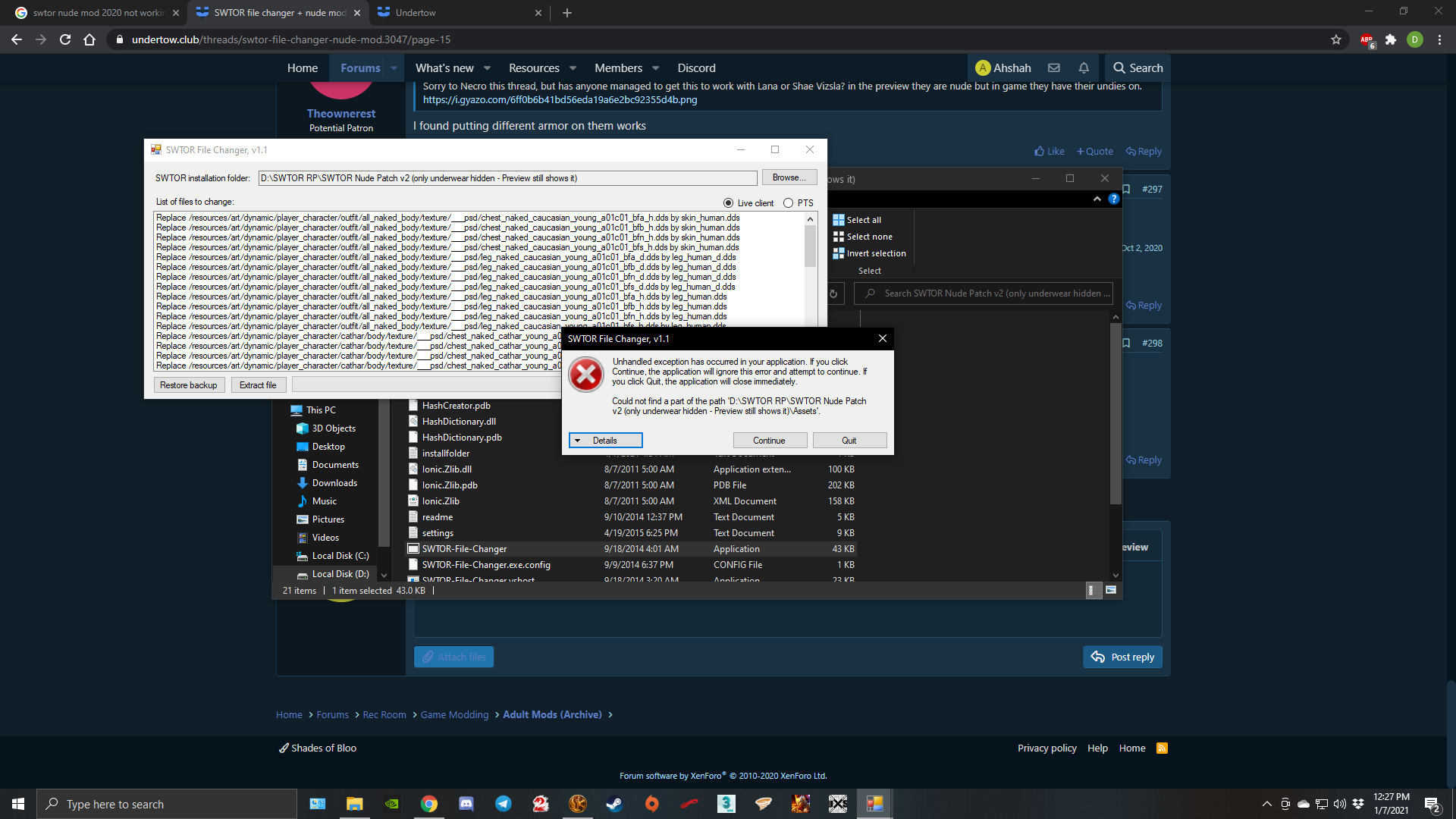 Hey, I've been tinkering around with this for a bit, but I am new to this stuff. I'm using v 1.1 and trying to mod individual items, specifically the xoxaan armor. I'm attempting to remove upper armor, leaving nude chest/torso with only the shaw remaining. Similar to the male version, but on a female. I've found that the shaw has a separate gr2 file to the rest of the top, so I subed the archetype with the nude body archetype and left the shaw gr2 in place. The problem is, the only way I've found to remove a purple glaze over the character's torso is to apply the large empty mask which shows the shaws real color in cutscenes and the outfit manager but melds it to the skin tone in gameplay. Is there anyone who can help give any advice how to fix it so that the shaw matches the color of the bottoms, not the skin while remaining mostly nude up top?