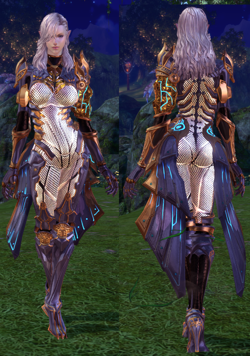 It took me an embarrassingly long amount of time to realize that my nude models can be used as a base for any other tera costume or armor, allowing me to strip them of any parts. Here is a gunner armor for example: