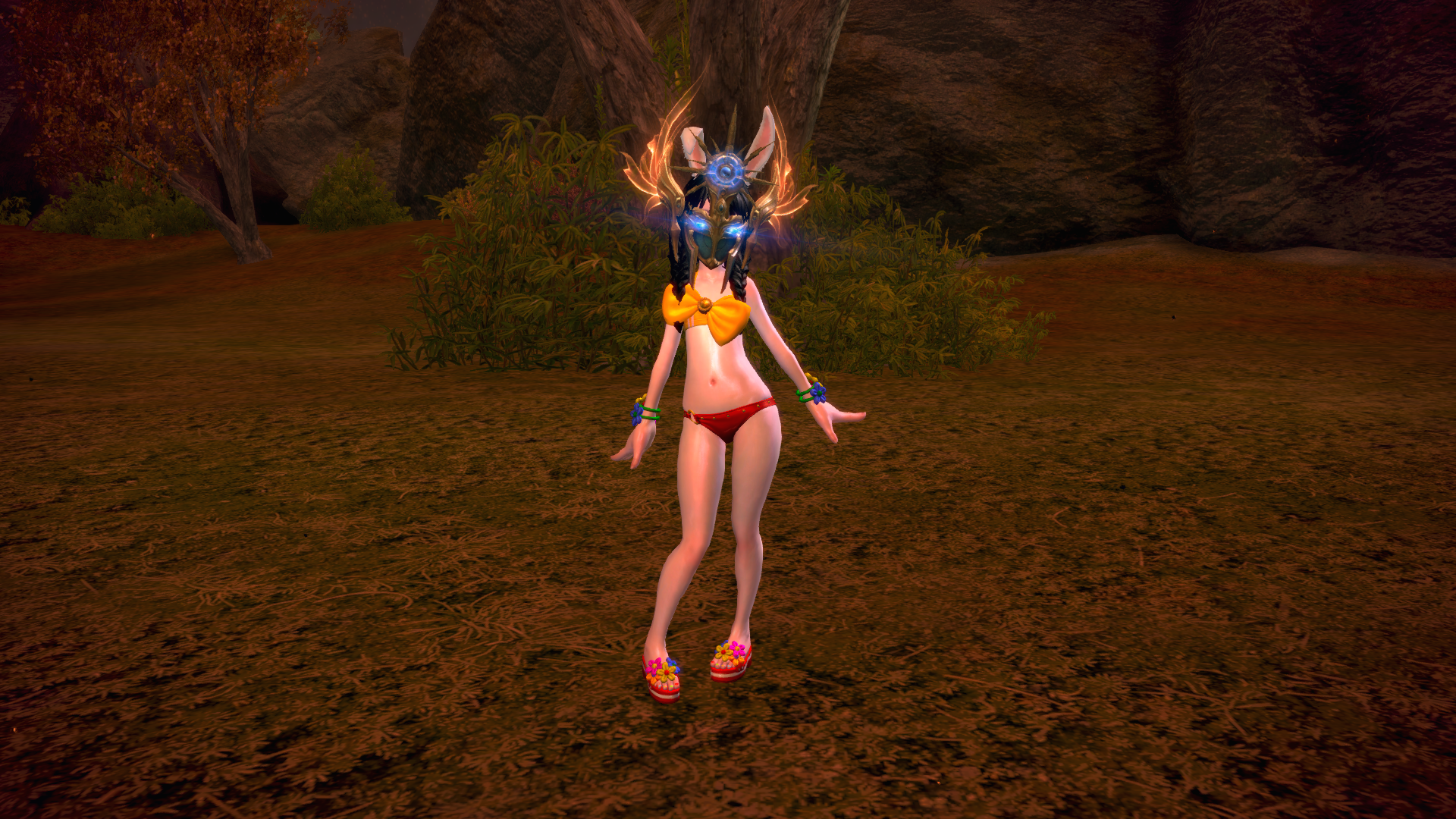 Aww, what about just removing the sandals? I know it was possible for Event 22, the devil\angel swimsuits.UC tried a while back, Seems there's no mesh underneath those costumes, so you'll end up with cut up torso and legs and such.