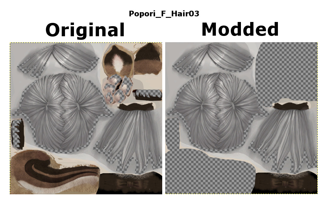 As for "just the tails", I can do that, but it will take some time. The tails are all on the same texture file as their accompanying hairs, so I'll need to edit 20-ish texture files again.