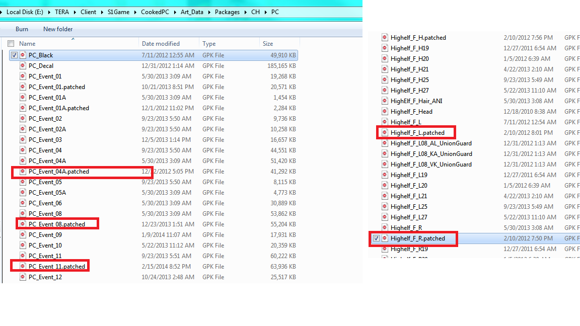 I'm not quite sure if this is the same issue, but when I was editing the colors of my Elin pirate mod I had a ton if issues with repacking and when it did repack I had an issue with it in game (the characters were semiseethrough with a static look). I also had a few crashes and after 2 days of getting annoyed with Paint.net I moved onto GIMP. It's similar and free and the magic wand is amazing for selecting and recoloring. I will say that factors that came into play was when I was saving and exporting. You have to be careful that 1 the format is correct (can't remember offhand what I set it on) 2 that you don't select the wrong thing (which was a common occurrence with my mods). Tera can be pretty annoying at times (particularly the older files) and it took me 3 days (without help and getting lost in the black hole referred to as youtube) but I eventually figured it out.