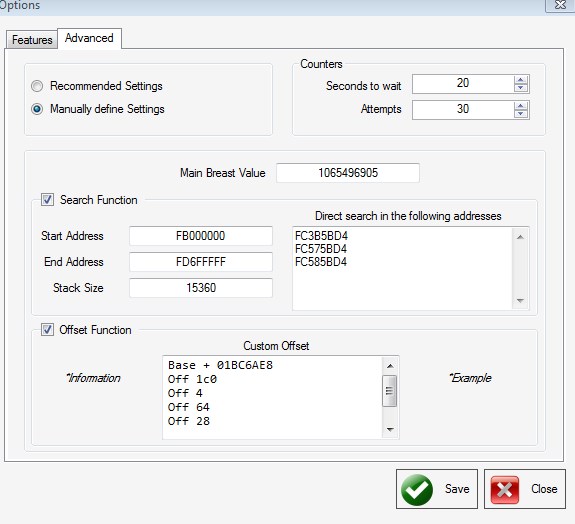 4) There should be a checked box called "Search Function" that has three settings in it. Those three settings are "Start Address," "End Address," and "Stack Size." "Start Address," as of now, is set to FB000000.