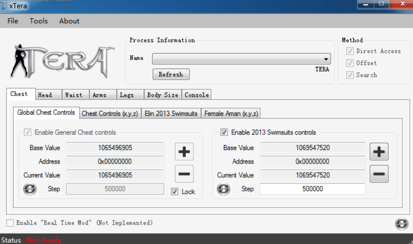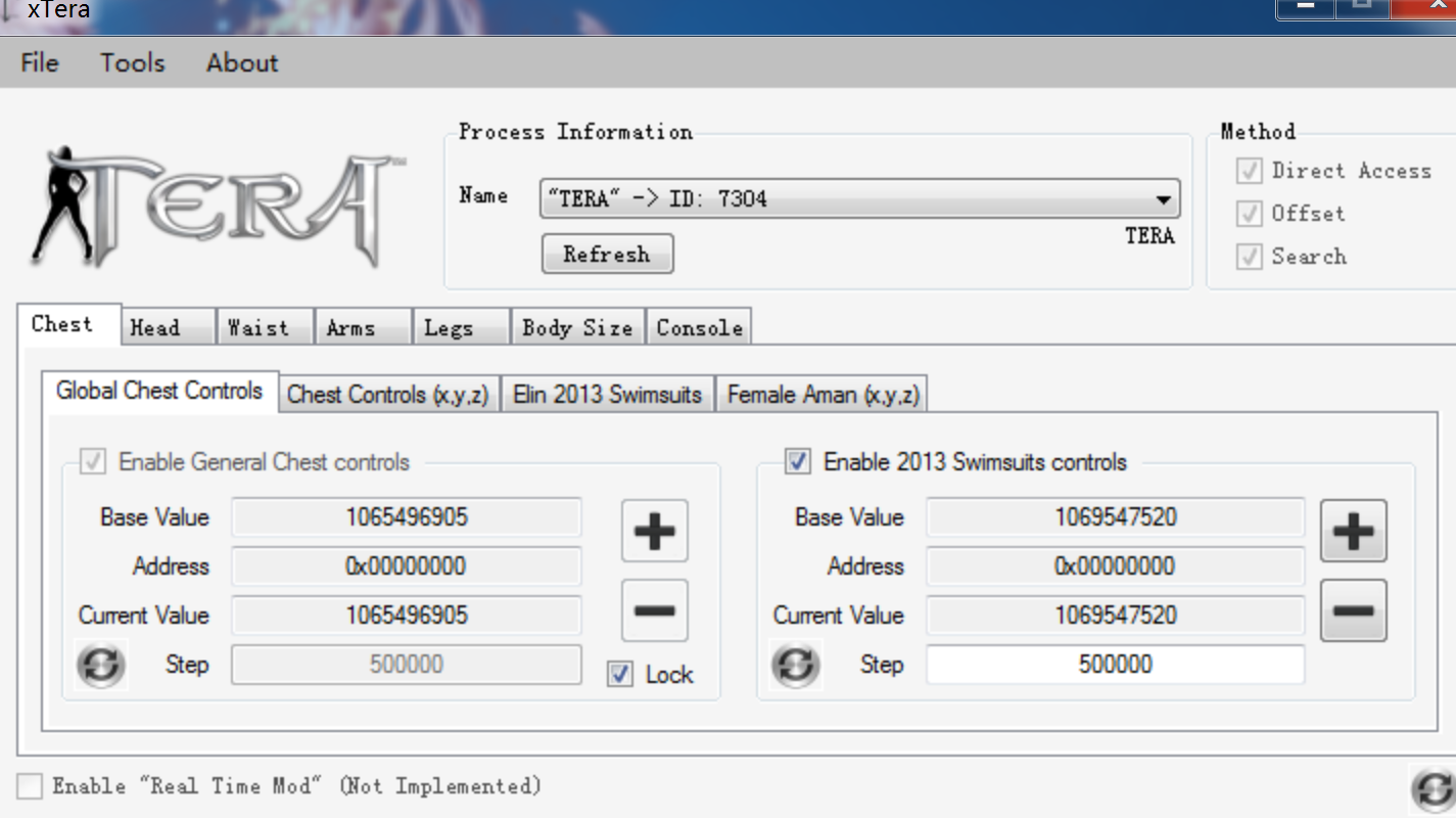 The way it works is it will have the opposite effect when you put in the value (having a +3 thigh size will result in a -3 thigh size after your character is created). The effect is permanent, even when xTera is off, changed equipment, login and out etc. The effect is only on you and your character alone, everyone else looks normal in game when the value is reset. So if you have an account full of characters created with xTera, you don't need to have it open when you're playing Tera for the changes.