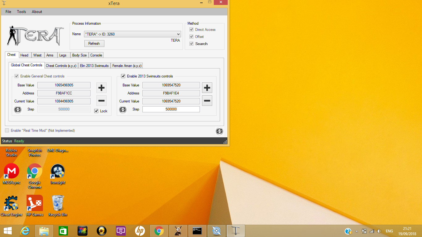 The address "F9B9F1CC" is correct for the main breast value but none of the others seem to be and the reason its crashing is because xigncode is seeing something it does not like. I managed to get the game running without crashing by using the xigncode bypass but still only the first value is correct, i'm guessing something in the structure of the memory has changed now but i cant be sure. I was able to find the head size value yesterday using cheat engine which sits at F9B9EDA4 instead of what xtera show as F9B9EEFC. I can likely find more values but unfortunately i have no idea yet if this can be fixed by changing settings in the program or if the author will need to change the code.