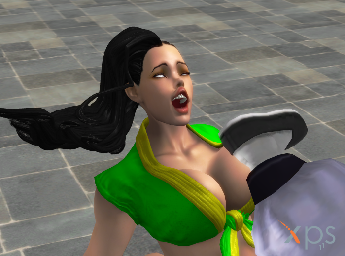the assassin then kicks laura in her pussy, making the voluptuous fighters wobbles and wiggle. Laura is besides herself with pain and confusion.