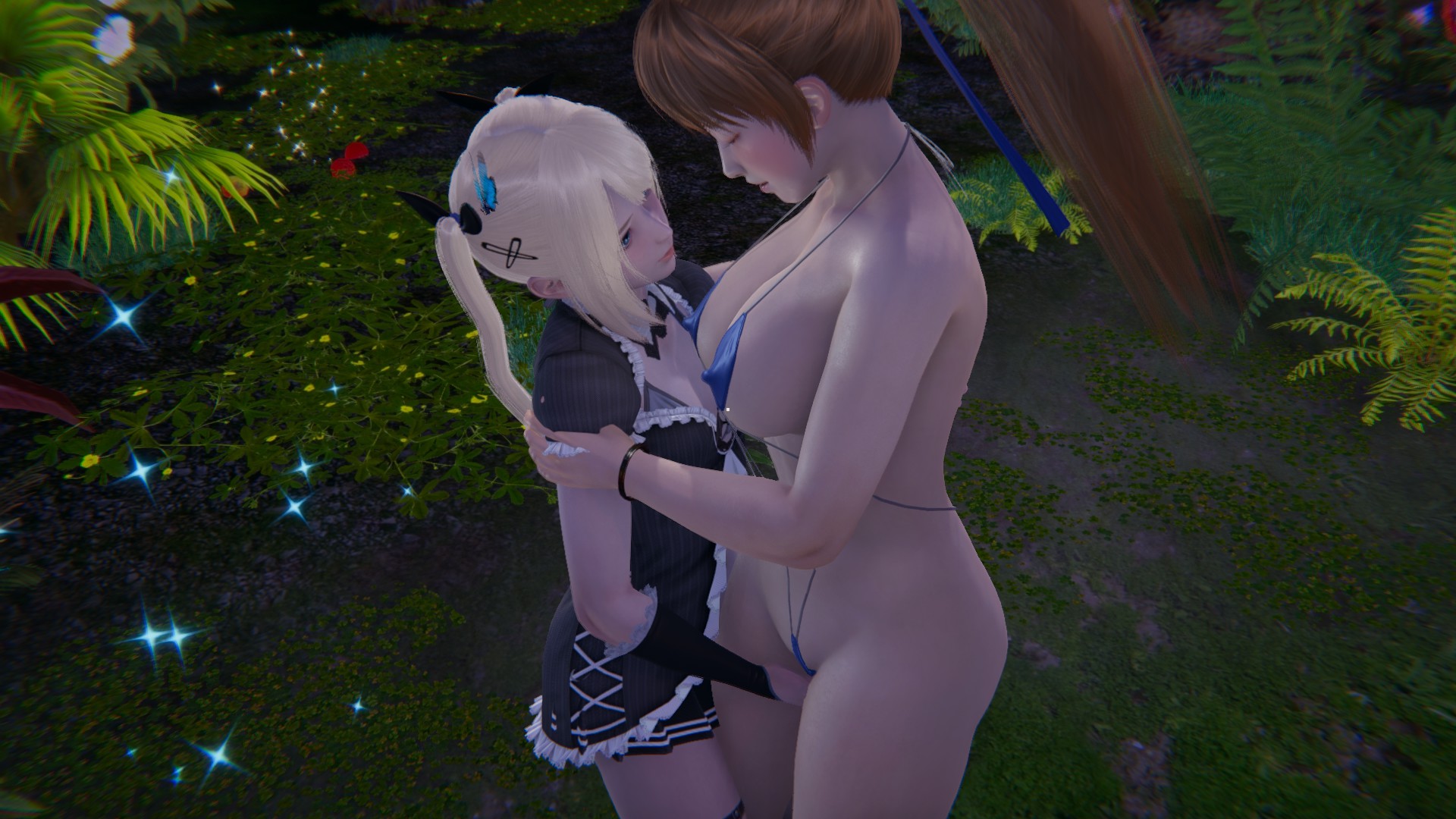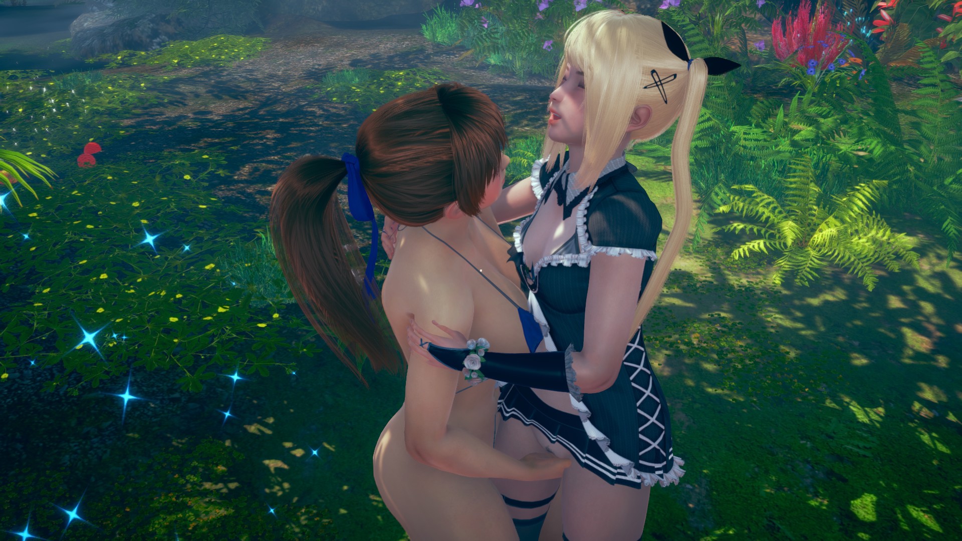 Zack had followed Tina into the showers, taking a peek at her sweet charms, as she cleaned herself. He was just about to sneak out, after she had finished, when Christie, and Marie Rose came in. He stayed hidden, wondering what the two were up to, when to his surprise, and delight, Christie began showing Marie, some womanly love. He watched eagerly, as the older Christie, showed the younger teen, how to tribadism, rubbing herself against Marie's sex, till they both came. (not a scene i set up, they just showed up on their own)