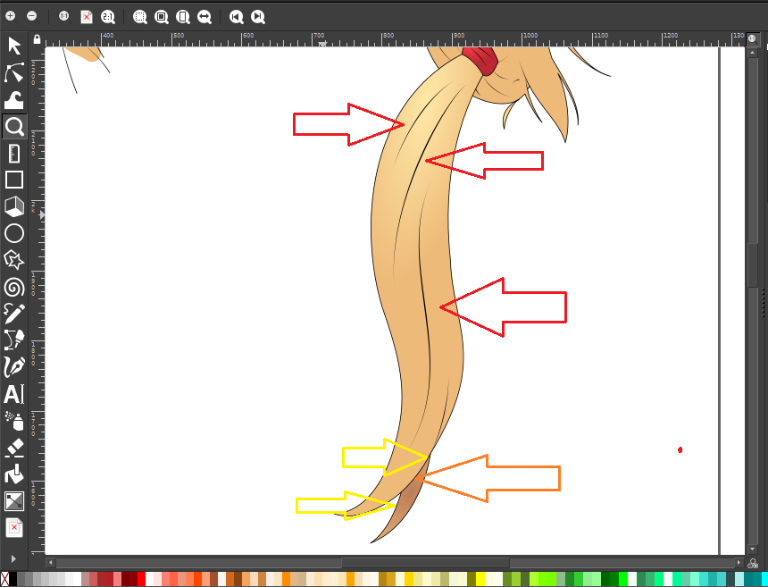 I think that it would be easier to only have the lines of the hair mod, and the shade and light reflection colours (or even just their outlines), because the base colour fill will often been redrawn out of the outside line. Just adding little coloured boxes named "base", "shade", "light reflection", and eventually "glasses frame/lens/hair accessory/etc." would simplify the work in my opinion, because instead of having a shape for the line and another for the fill, with different outlines, having only one for the line is easier, as it can be copied, adjusted and coloured in two seconds.