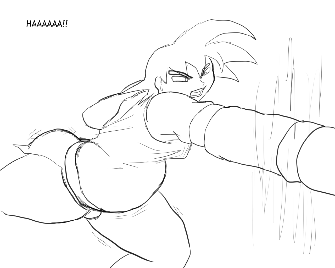 Angered, the thick headed sayian tried to kick his opponent with a very slow ugly kick. not realizing he left his big fat gut wide open. naruto sees his target.