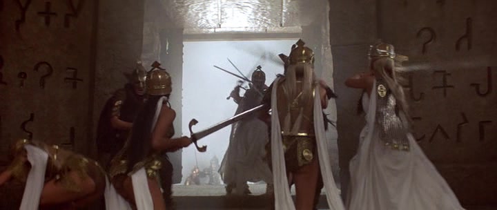 She's not much good as a fighter, isn't trained, is no amazon or kunoichi - and not even up to much with the weapons she invariably carries, but relies on the firepower and superior numbers. Basically a coward she'll run away in any fair fight or quickly give up; she'd never be so brave as to fight to the death, committing suicide has no appeal. She's not "loyal" to whatever outfit she's involved in, but there for what she can get out of it and would sell out her own side if it was safe to and to her material advantage. In her view, she's not there to fight, but to get rich by forwarding the enjoyable criminal activities undertaken by murdering or capturing easy prey, robbing etc. Then she ends up in what she thinks is such a situation, where all the odds seem overwhelmingly with her, and what happens is something she never figured on - she gets a final, possible fatal shock. The tables get turned against her and the others by an opponent or opponents who looked doomed, but prove too skilled and courageous for them. One of my favorite moments is when the woman loses her weapon - or she is stunned to discover the weapon isn't helping her kill her opponent. At that moment all her self confidence vanishes to be replaced by fear and panic. We don't care what happens to people like this, as they richly deserve whatever bad things befall them and the world is a bit better place when they're removed from it by death or incarceration.
