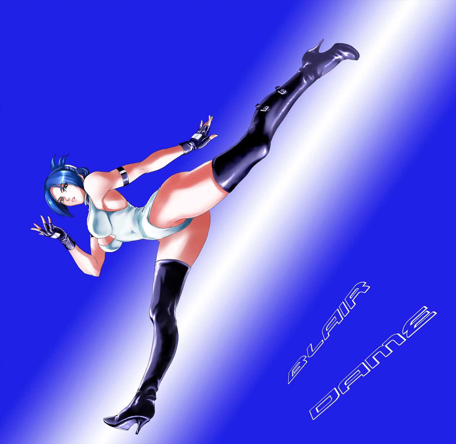Disgusted, Shyne attempts to kick out at the cameraman.. how dare he try and.. well, she conceded, her costume was quite revealing.. but still..!