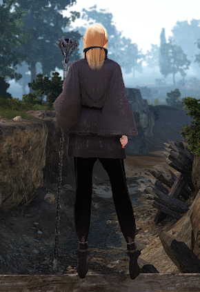 This replaces the newbie shoe with heels. Since the Sorceress is designed for heeled boots, the foot model is arched, making it look like she's constantly walking around on her tip toes unless there's a shoe involved. They're black - not sure if that can be configured easily or not.