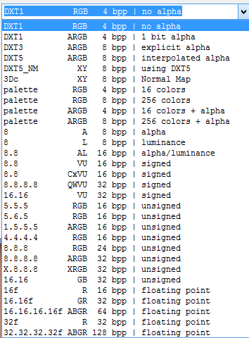 I am using Photoshop CC, saved as DXT1 RBG and tried DXT ARGB.