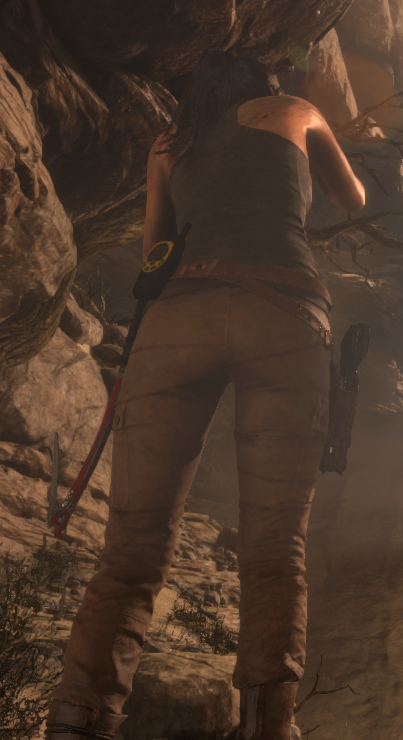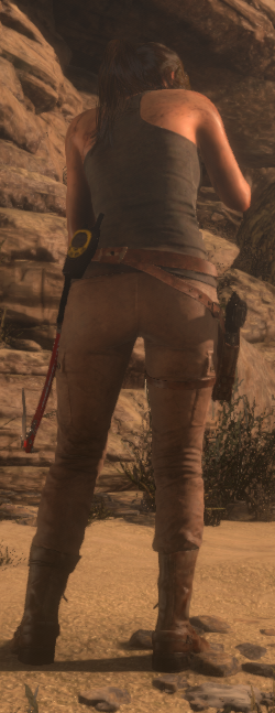 The problem is that these subtle lines on her pants are bright red on a edited texture. It turned out that RotTR texture system is pretty complex - there are a lot of texture layers for same object and all textures are applied together to form a final object surface look. It's going to be hard to mod that.