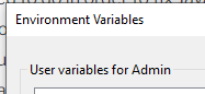 Normally if you go in the windows search bar and type "environ" without the quotes, you will get two things, notice they are different. The one at the top is "Edit the system environment variables" the second one is "Edit environment variables for your account". Again I get these 2 options since I have two accounts in my Windows PC, one is and Admin account with a strong password that will ask me for the password whenever I want to install something or put something in my C drive, the other account is my regular account that I will use to play games etc..., so when I try to install games from my non-admin account it always ask me for my admin password. and hence here I get two options. The first option will ask me for the password since the system environment variables are for all accounts, and the user environment variables will not ask me for a password as they are not for all accounts, jus the one I am currently in.