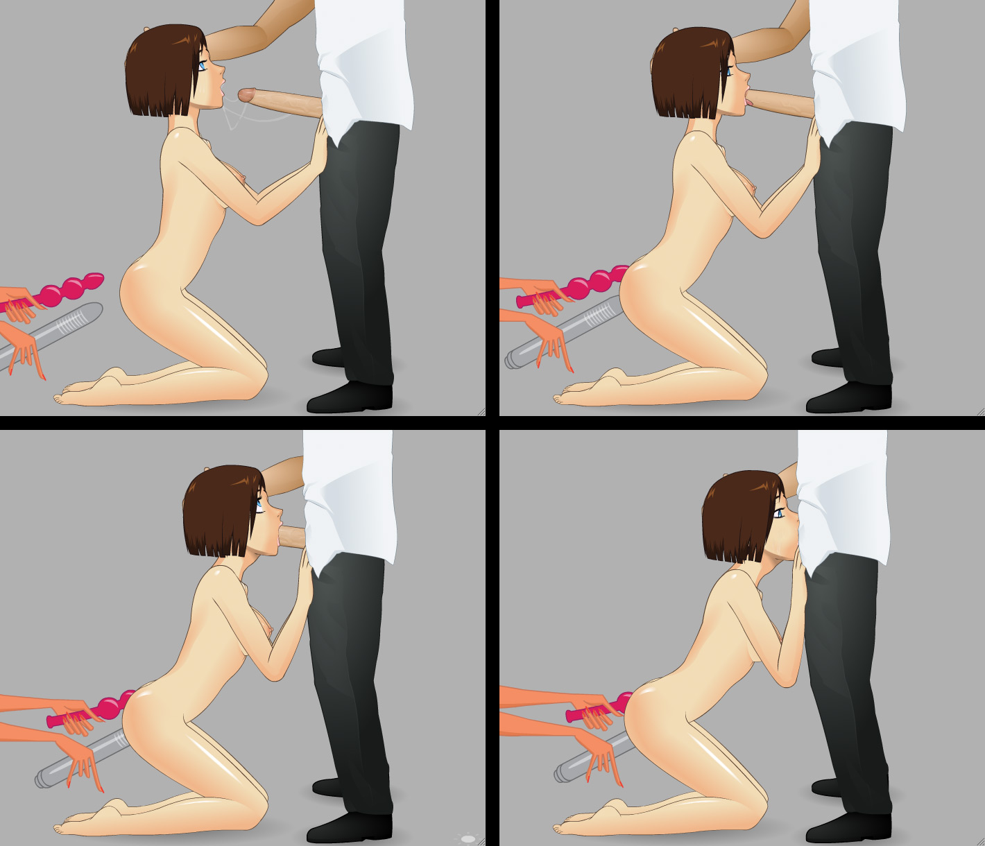 While experimenting with dynamic hair, I tweaked the gravityAngle, rotation, and positions of different hair layers. I soon discovered that one of the layers behaved like an object penetrating the girl from behind. So i took it a step further. The vaginal toy even has a vibrating animation :)