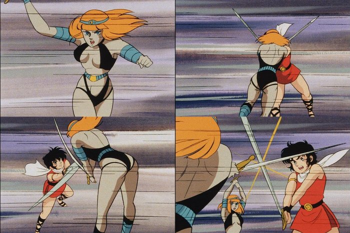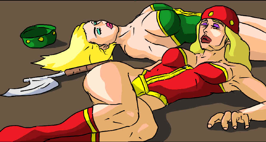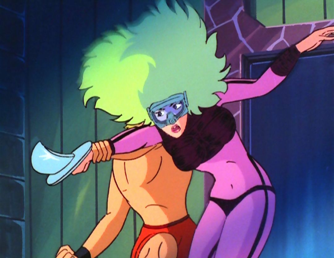 or Growl/Runark, where the heroes beat the tar out of hordes of villainesses in miniskirts, sometimes blowing them up or having wild animals attack them:
