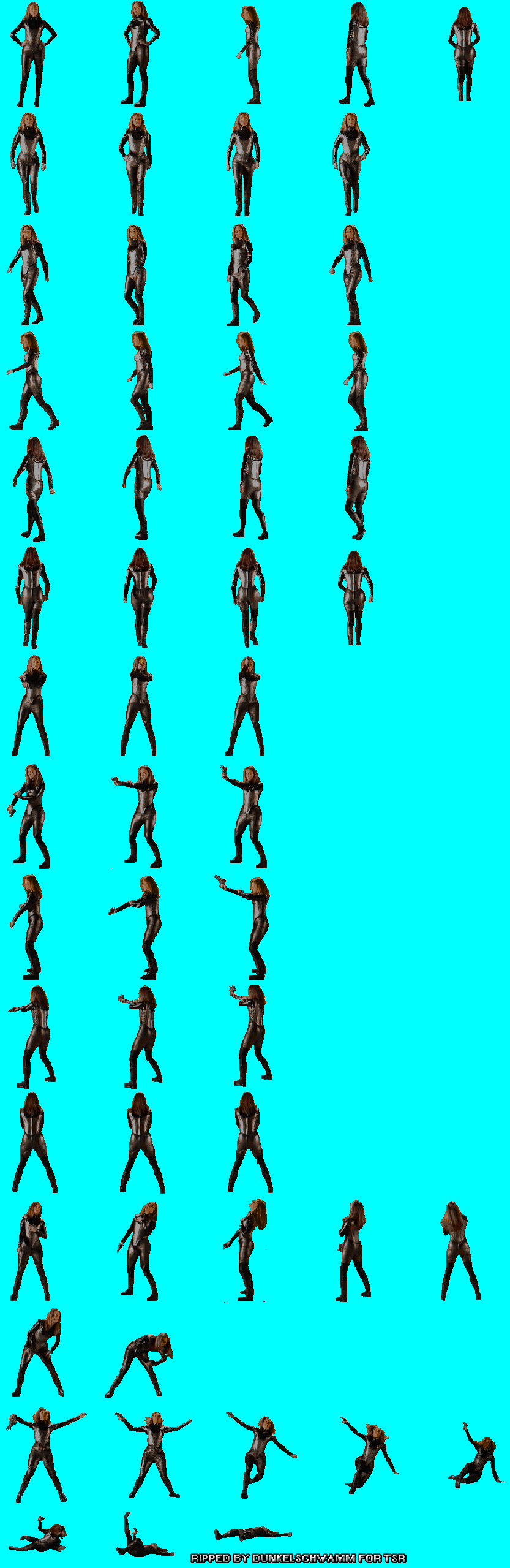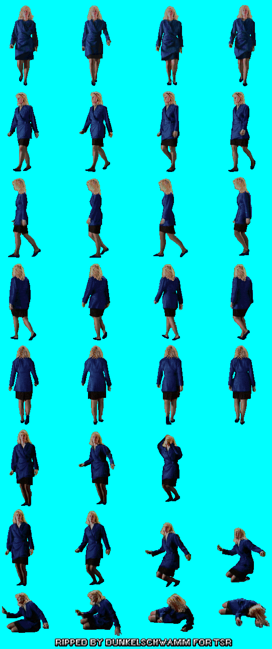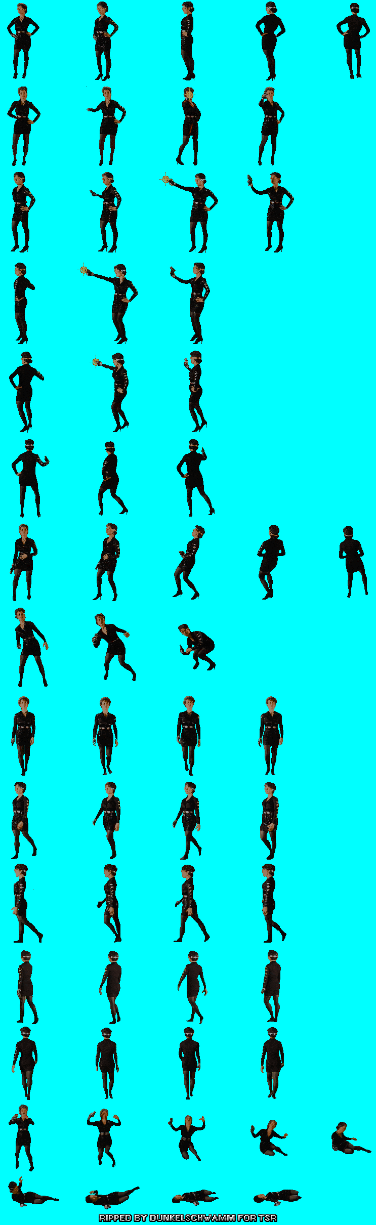 Don't recall seeing this posted yet - William Shatner's Tekwar. Has some really nice female enemy sprites. They are digitized from live actors, I think. The leather clad assassin lady and the female thug are the best.