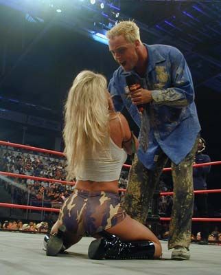 This is a old school WCW "ryona" moment (I think), and one of my all time favorite, involving Major Gunns (Tylene Buck) as a heel.