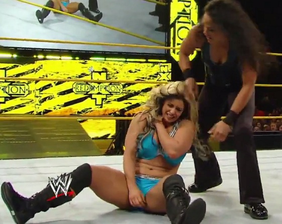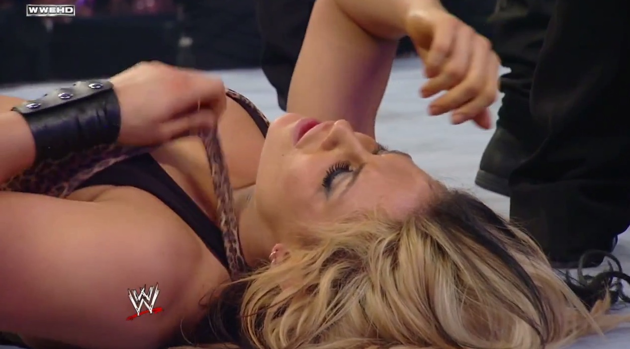 Not a huge fan of "Kelly Kelly"/Barbara Jean Blank, but I am a fan of scantily clad girls looking pained/upset!