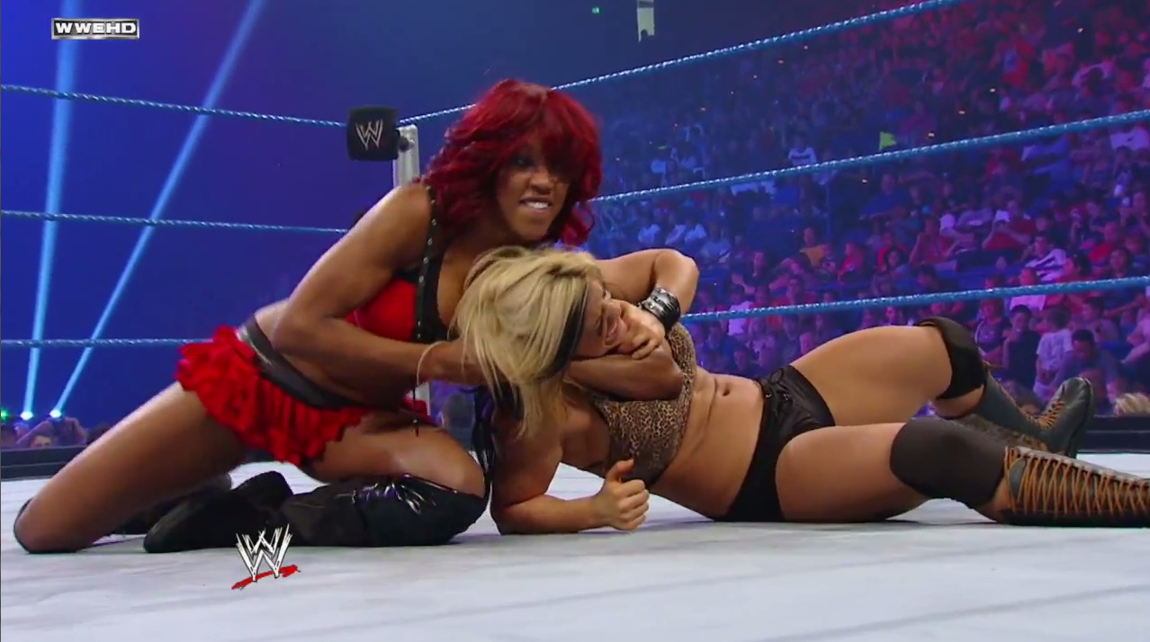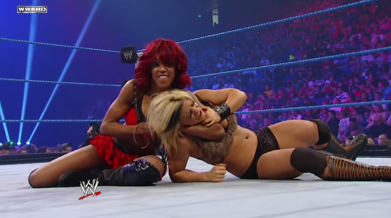 Not sure what it is, but with WWE I definitely dig screen grabs of agonized moments more than video. Something about being able to see gorgeous faces contorted in pain/fear but forever transfixed. The moments that excite me feel all too brief in the context of the matches themselves, because it's obviously not like traditional fetish content where the girl's misfortune is totally exaggerated to the level of a proper focal point.