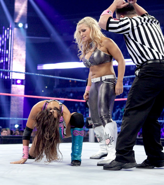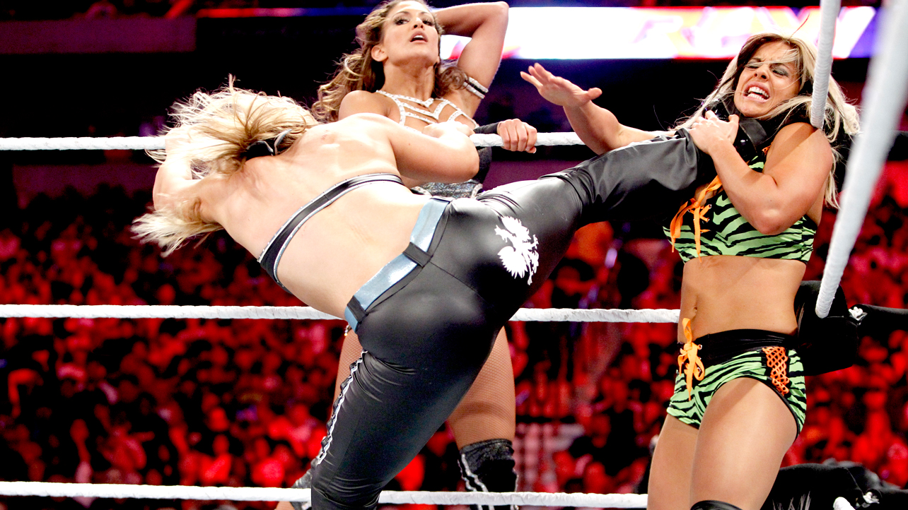 AJ Lee and Tamina Snuka show Natalya Neidhart what it feels like to be a washed up has-been.