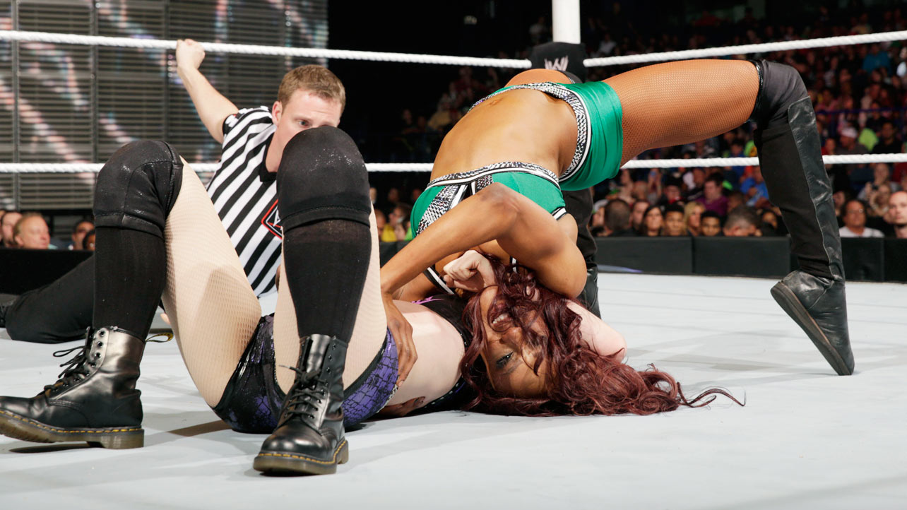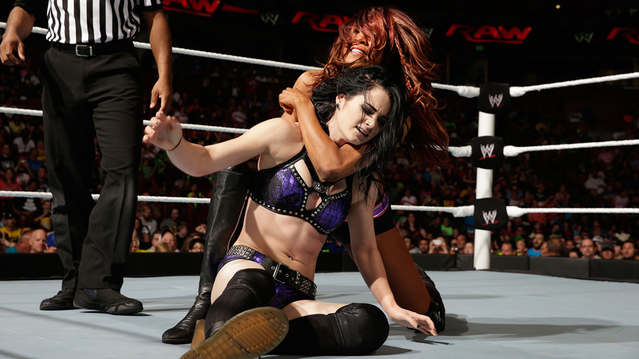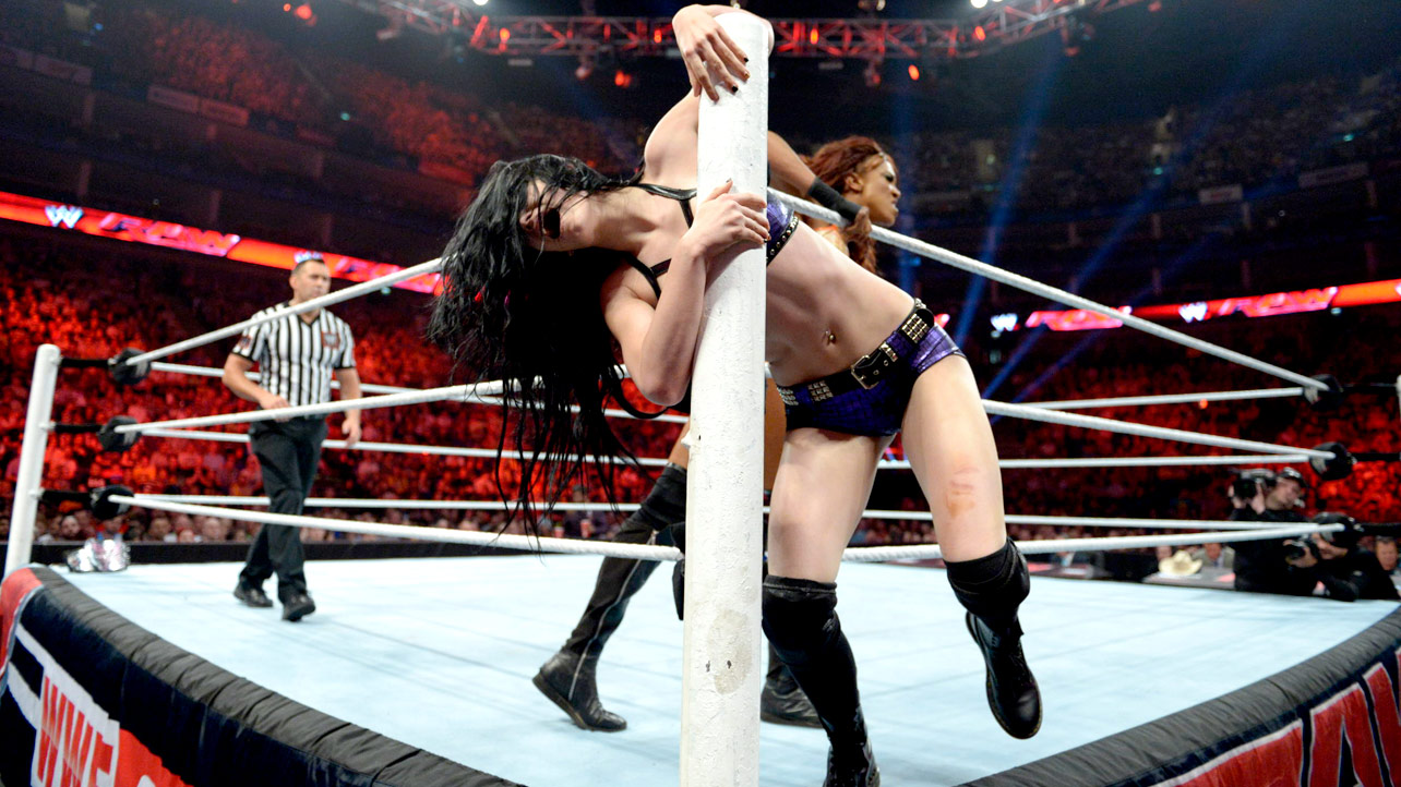 And Paige wrestled Alicia Fox again! This was their best match yet though as far as ryona goes. Just Paige being dominated the whole time until pulling out a somewhat flukey win. I pretty much gif'd the whole thing, it was beautiful: