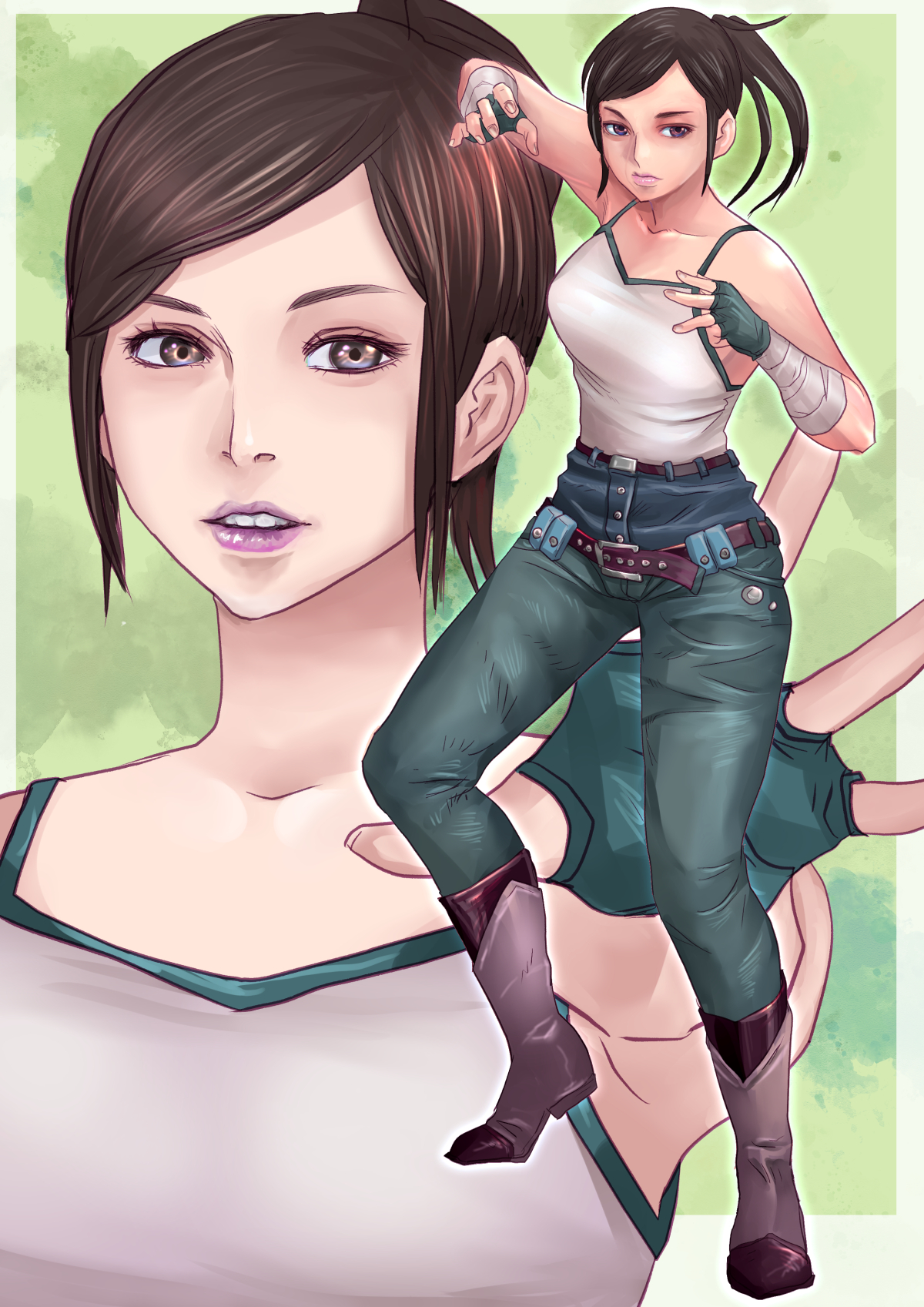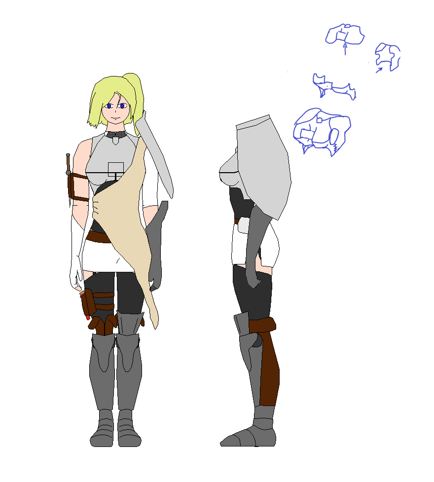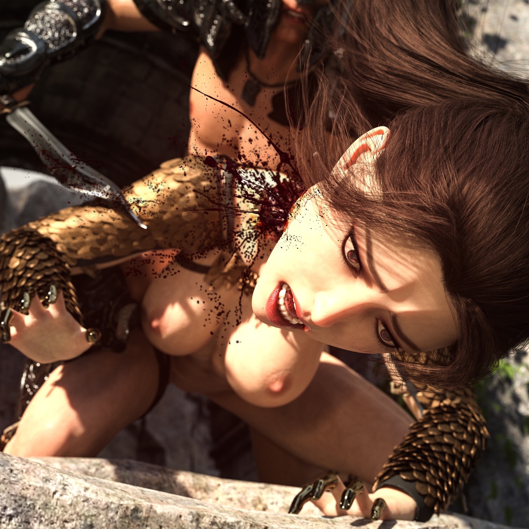 The last picture is very cool! There is good attention to details (her hair, her armor, dirt on the stones etc). My English is not so good as I wish to have, so I will try to say as I can. I like how her tits looks - pressed to the ground and by this squashed. This is a rough road and stones are not equal (one higher than another) and it look like her tits positined in the lowering of the ground. I just like it. Her ass looks very good with all that goose pimples.