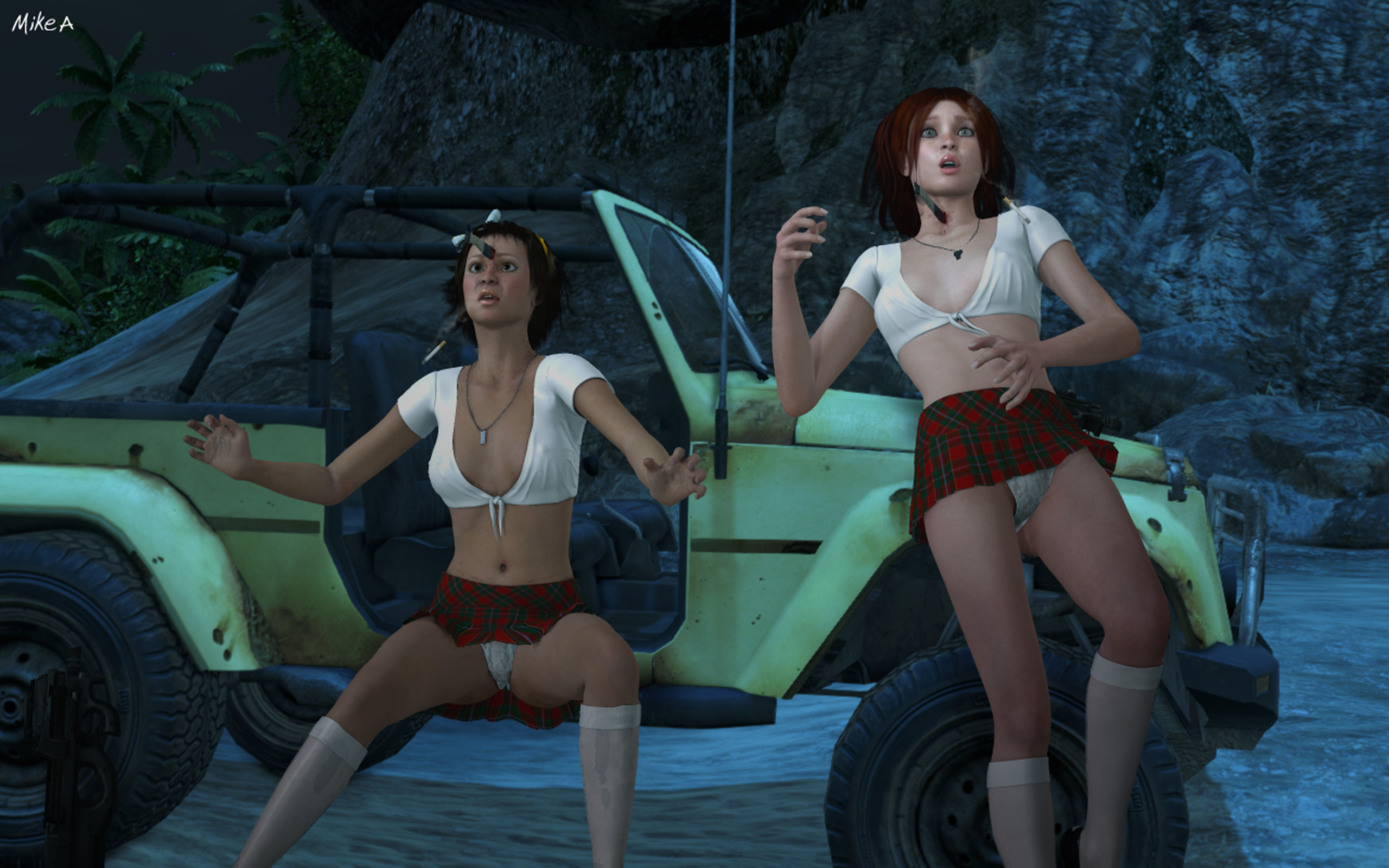 The sultry survivors flee for their lives - their confidence having turned into cowardice. Friends, lovers, weapons and equipment lying abandoned behind them.